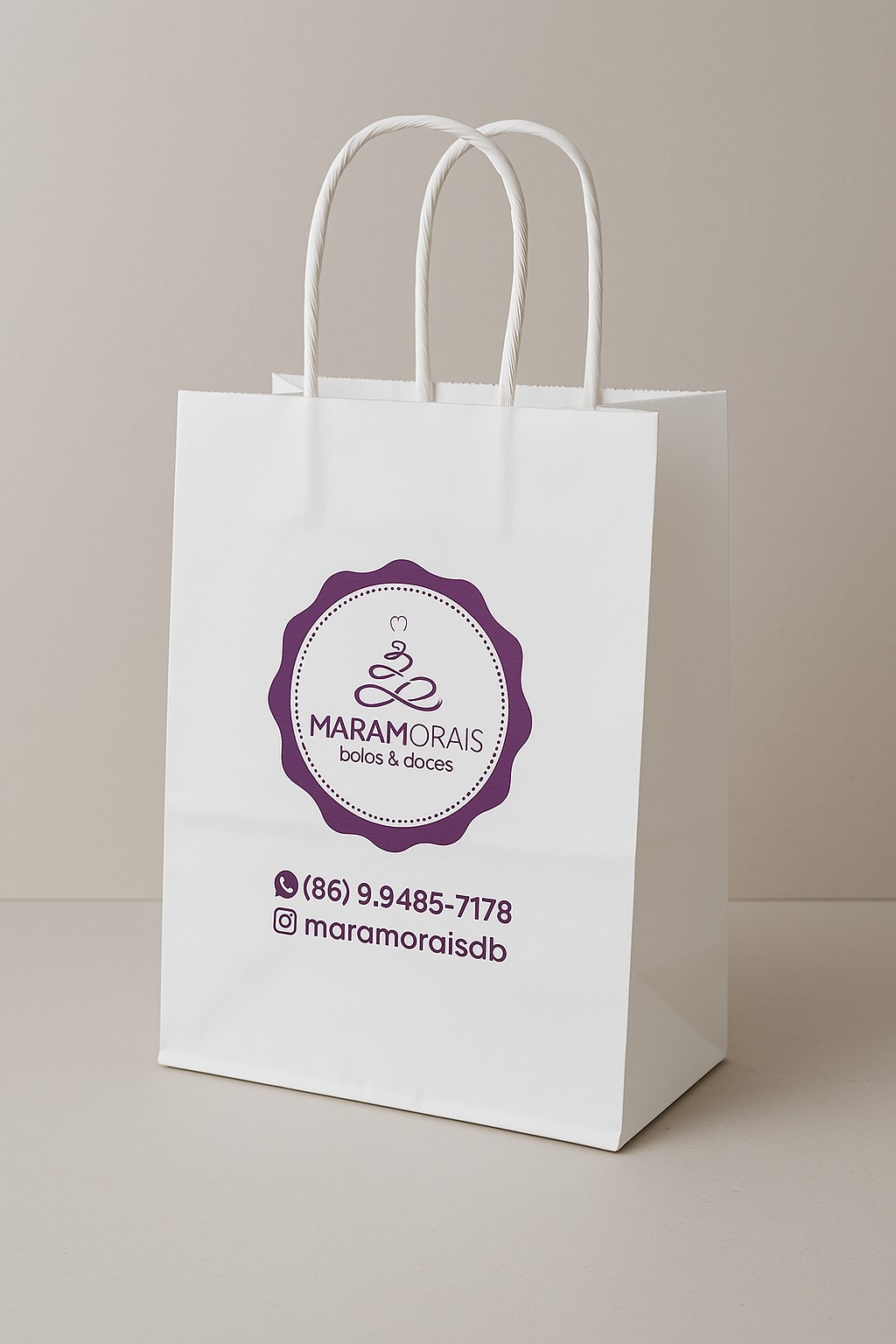 Sacola Kraft 14x21 com alça, 70 gramas colorida, sem limite de cores.